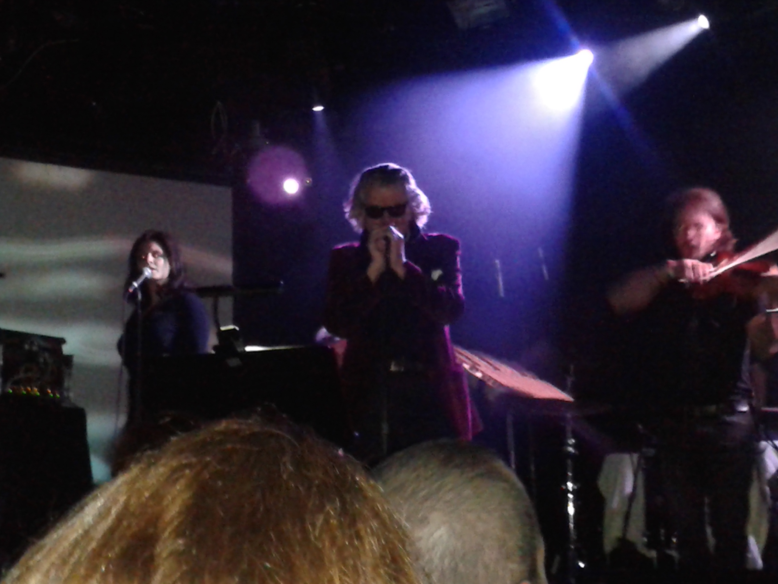 Dieter Meier, known as the Godfather of techno pop along with collaborator Boris Blank, kept Le Poisson Rouge jumping Sunday night, though the uber polite Swiss obeyed the New York cabaret laws and didn’t dance. Dieter’s new project “Out of Chaos” starts with madness…the wailing violin, video images bouncing off the back screens aided by the alchemical zap of electro punk pioneer T.Raumschmiere.